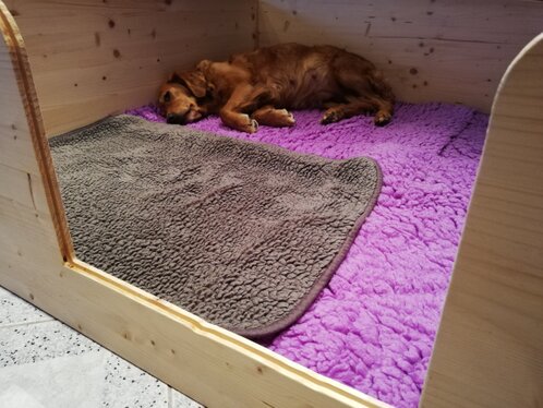 Wir haben bereits alles für den großen Tag vorbereitet und Lilly liegt schon mal Probe in der Wurfkiste.