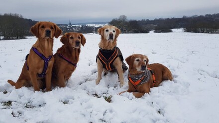 Ein Schnee-Spaziergang einmal anders: Diesmal fragten wir den "Hoch-Apport" ab. Unser Kommando "oben" ist für Nova was Neues, aber für die "alten Mädels" eine willkommene, spaßige Abwechslung im Dummy-Alltag. Sogar Oma Gracie "gab alles" und klaute beim Aufhängen das ein oder andere Teil, zu süß. Hier die Fotos dazu.